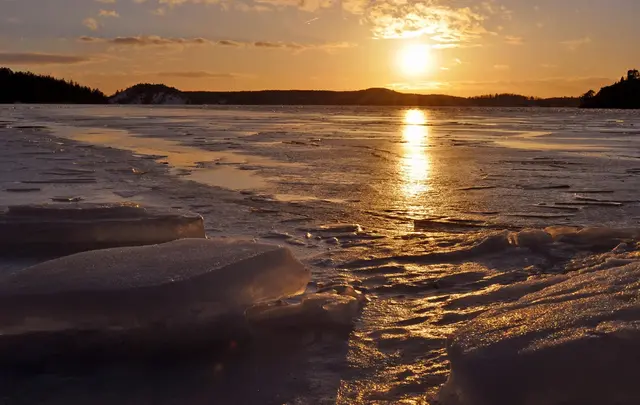 Islagd Mälaren vid Sätra naturreservat.