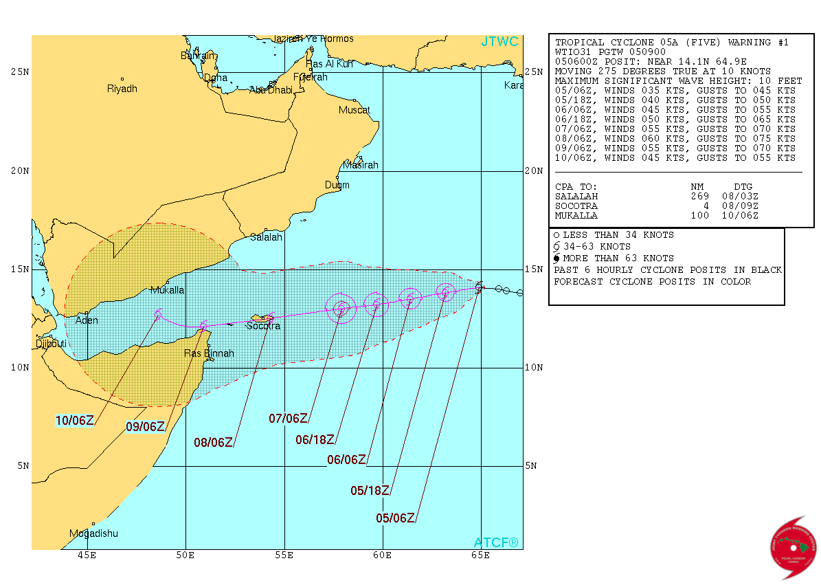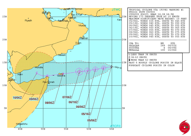 Bara drygt en vecka efter Chapalas framfart hotar en ny tropisk cyklon att dra fram över Jemen och denna gång även Somalia. Under torsdagens morgon klassade det USA-baserade Joint Typhoon Warning Center ”TC-5” som en minimal tropisk storm. Prognosen är dock att stormen kommer att växa i styrka under de kommande dygnen. I nuläget verkar det som att TC-5 inte kommer att nå orkanstyrka då de atmosfäriska förhållandena inte är lika gynnsamma för intensifiering som de var för Chapala. Däremot kan det ymniga regnet i anslutning till stormen säkerligen ställa till med omfattande översvämningar då TC-5, precis som Chapala, drar fram över torra områden där stora regnmängder på kort tid är ovanliga.