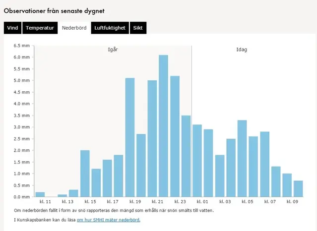 Under det gångna dygnet drog ett ettrigt lågtryck med tillhörande regn in från nordost över nordöstra Svealand och sydöstra Norrland. Lokalt föll då stora mängder regn. Automatstationen i Gävle fick ta emot 55,1 mm medan den manuella stationen noterade 60,3 mm.
