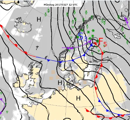 Förstora bildenVäderläget klockan 14 den 27 mars 2017.