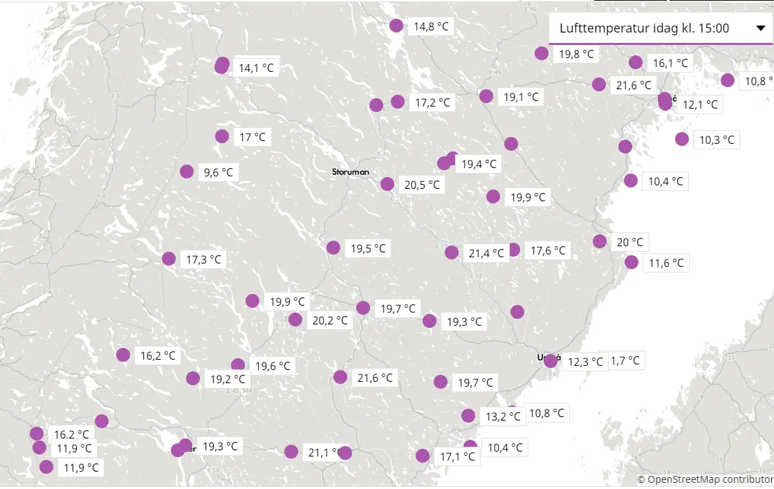 Örebro | 21,6° | 20,2° 2011 | 1858 |