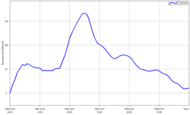 Länk till annan webbplats. liknar till viss del vädret under ovädret i januari 2017. Även här hade vi ett lågtryck som rörde sig åt sydost över Östersjön mot Polen och nordostlig vind som följde i dess spår. Några direkta mätningar av vindhastigheten finns inte dokumenterade, men både Hanö och Utklippan vid Blekingekusten angav vinden till 12 Beaufort, det vill säga full orkan. Vattnet pressades ner till södra Östersjön från de östra delarna av Östersjön. I Ystad var havsvattenståndet 169 centimeter över normalnivån natten mellan den 30 och 31 december.