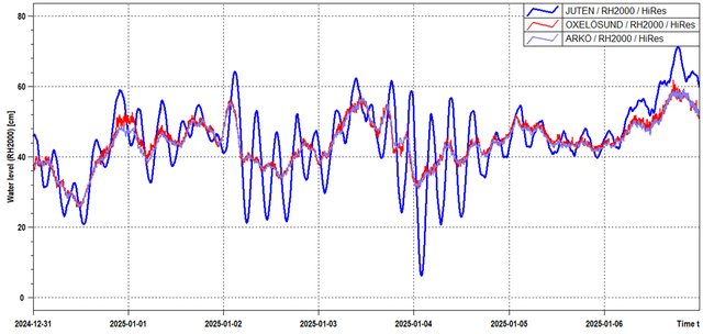 På västkusten var det riktigt stora vågor den 7 januari och på ostkusten blev det en långvarig pendling i vattenståndet veckan efter nyår.