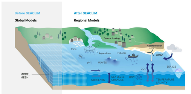SEACLIM will also develop regional ocean climate indicators for more detailed predictions; support the European Digital Twin of the Ocean (DTO) by generating “what-if” scenarios for climate change; and develop coastal and ocean climate services demonstrations.
