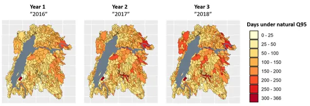 This scenario was produced with SMHI’s hydrological model HYPE. The scenario is based on conditions during the dry winter of 2016 and the dry summer 2018, adjusted for a future climate that is both drier and warmer. The sequence was repeated for two following years.