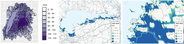 The scenarios in the second and third images were created by adding the rain in Gävle to already saturated soils and full surface water reservoirs.