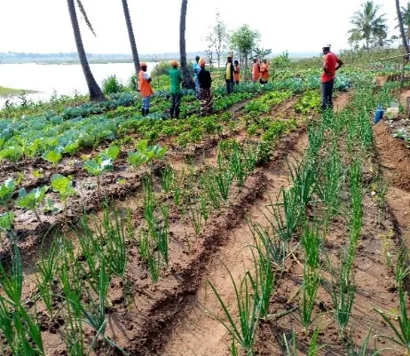 Agrandir l'imageProduction de légumes sur les rives inondées du fleuve Licungo