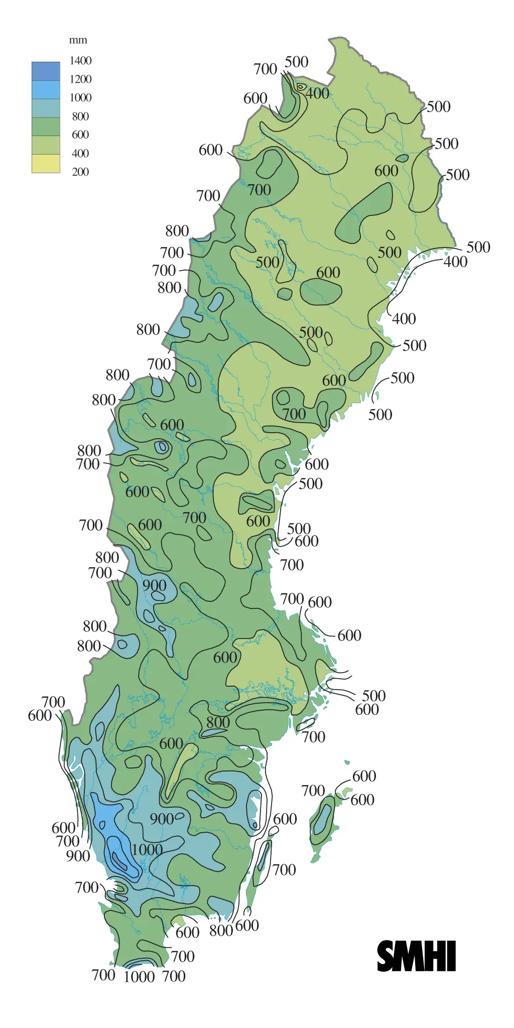 Som vanligt så visar nederbörden en mer splittrad bild än temperaturen. De blöta områdena var i majoritet och i Linköping slogs till och med det gamla årsrekordet från 1960.
