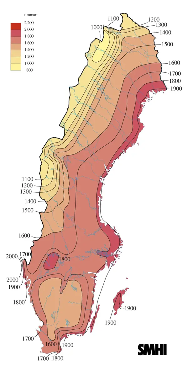 Det var heller inte någon enskild månad då soltimmarna avvek alltför mycket från normalvärdet.