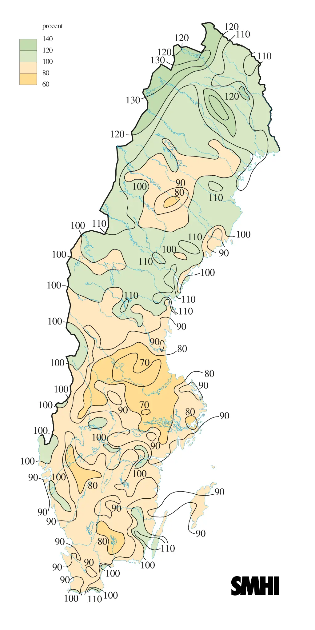 På många håll i norra Sverige kom det mer nederbörd så sent som år 2012. I vissa nederbördsfattiga områden i södra Sverige var förhållandena märkligare.