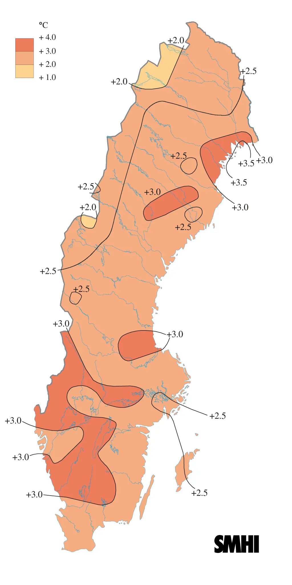 Maj var något varmare än normalt med upp till 2° temperaturöverskott.