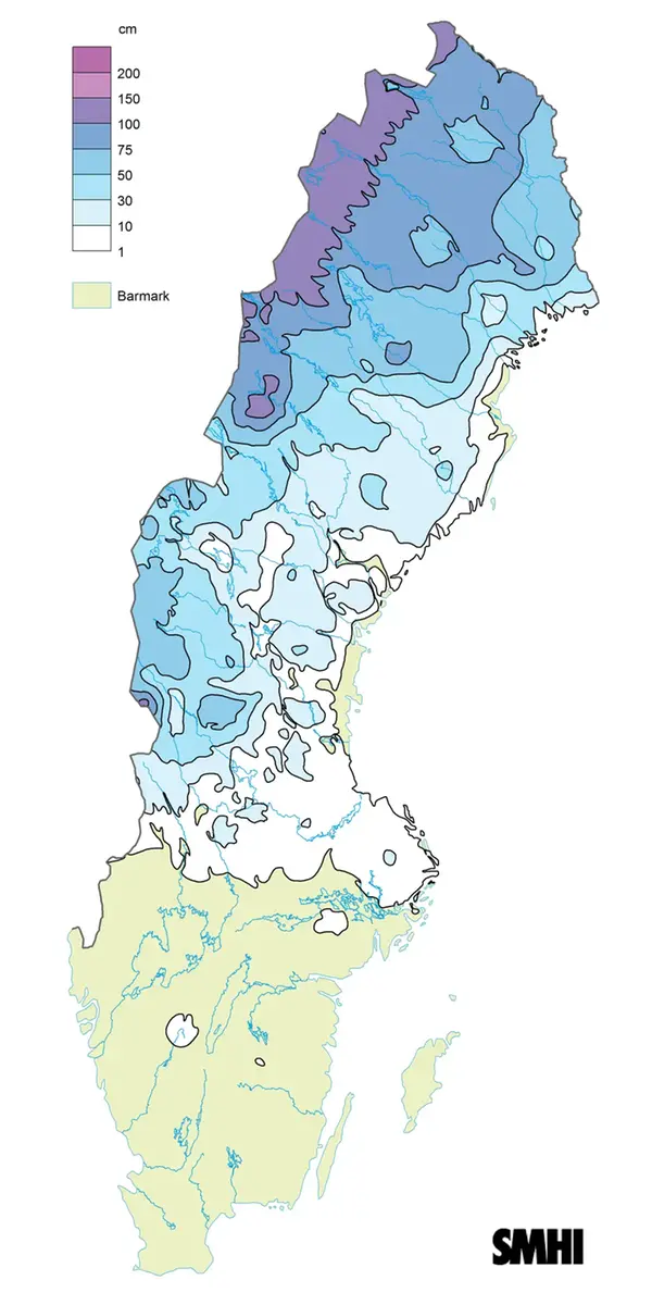 Mars inleddes med ett snötäcke som sträckte sig ner till mellersta Svealand. Under månaden pendlade snögränsen några gånger fram och tillbaka för att i slutet av månaden befinna sig i södra Norrland. Almdalen i Jämtland hade 167 cm den 20 mars vilket även var hela säsongens största snödjup.