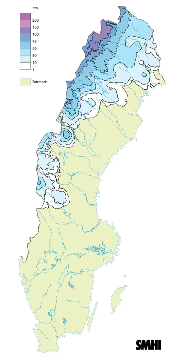 Snötäcket drog sig under maj tillbaka till fjällkedjan och i slutet av maj var det bara snö kvar i nordvästligaste delen av fjällkedjan.