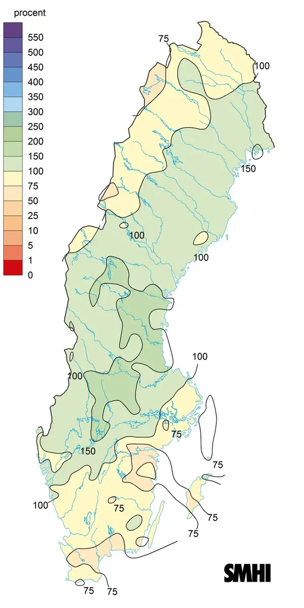 Våren är i allmänhet nederbördsfattig. Öland, Gotland och delar av östra Småland har haft en långvarig torka. På andra håll har en stor del av vårens nederbörd fallit under några enstaka tillfällen.