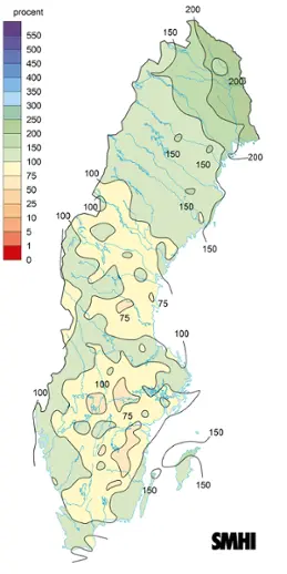 Som helhet blev månaden regnigare än normalt i större delen av landet. I Norrbotten var det på en del håll fråga om rekordstora regnmängder.