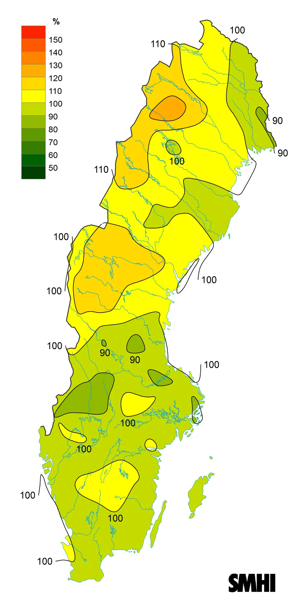 Nederbörden under vintern blev något rikligare än normalt i nästan hela Sverige.