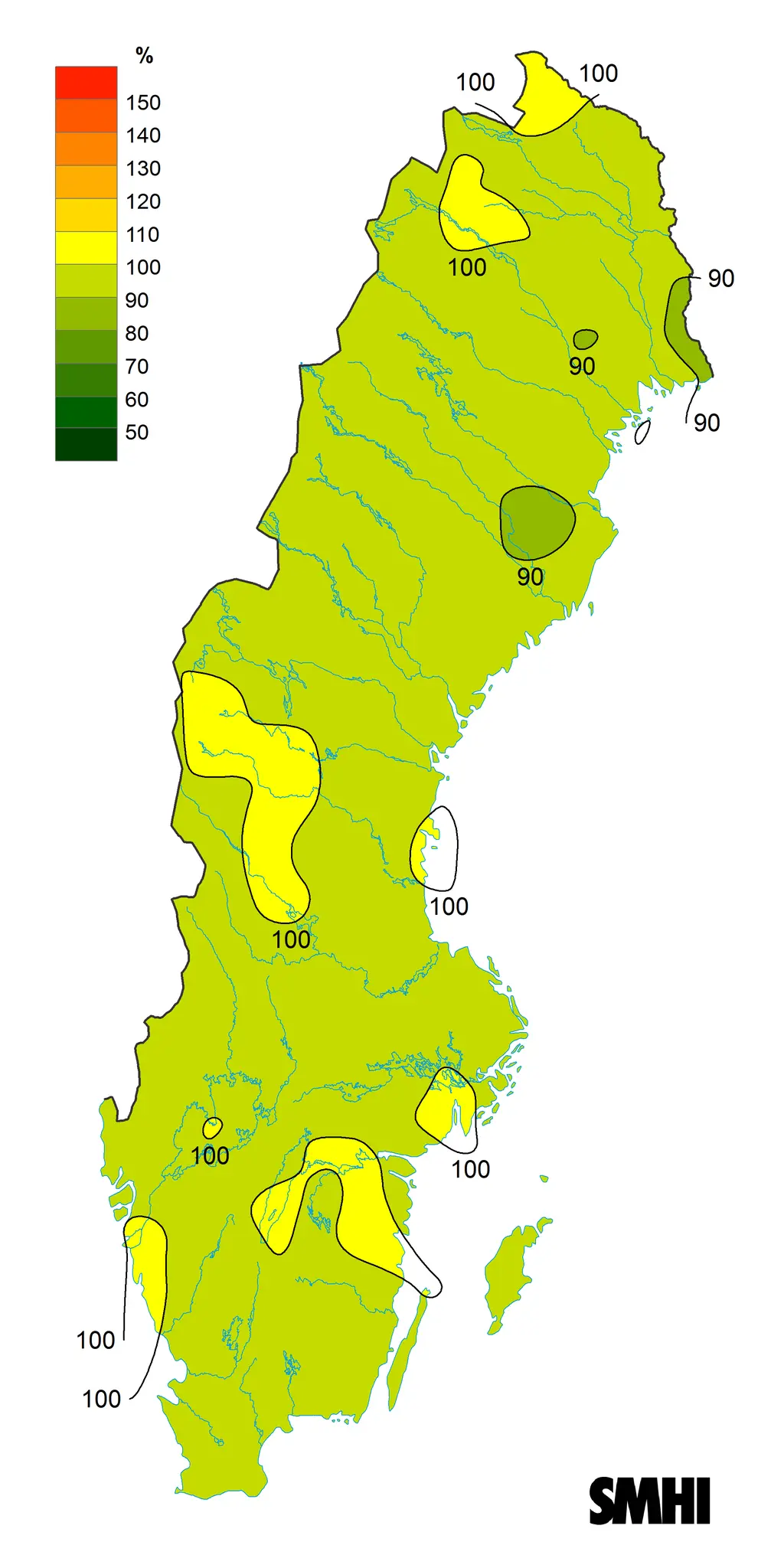 I större delen av fjällvärlden samt delar av Skåne och upp längs Östersjökusten var det däremot torrare än normalt på de flesta håll.