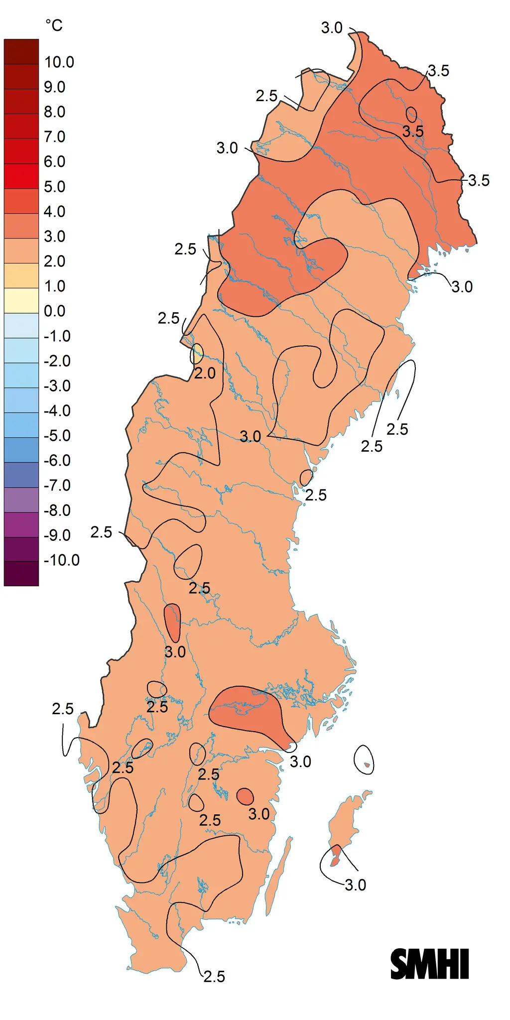 För Sverige som helhet blev det en av de varmaste höstarna som observerats under de senaste 160 åren. Höstarna 2006 och 2000 var i stort sett lika varma. Därtill har vi nu haft tio varma eller mycket varma höstar i rad vilket får ses som anmärkningsvärt.