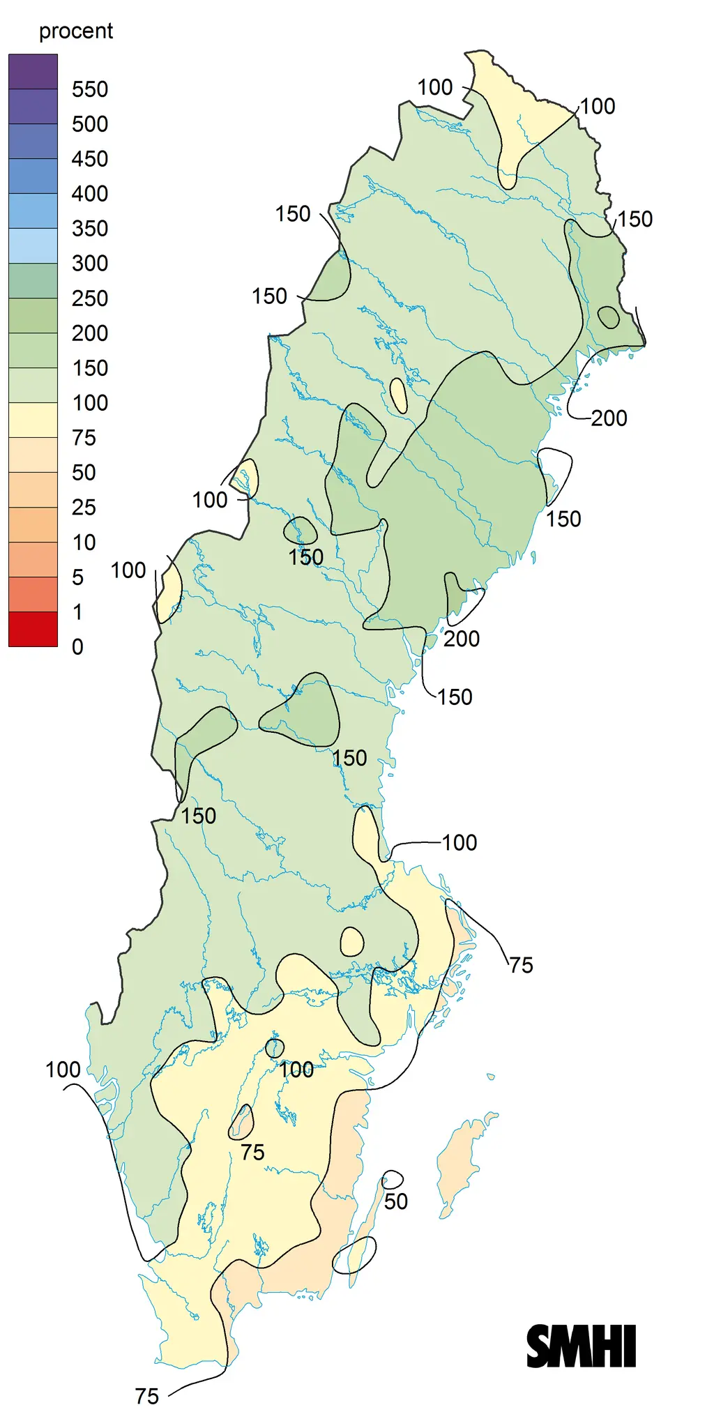 Även i Örnsköldsvik (startår 1941) i Ångermanland var det den tredje nederbördsrikaste hösten efter 2006 och 2000.