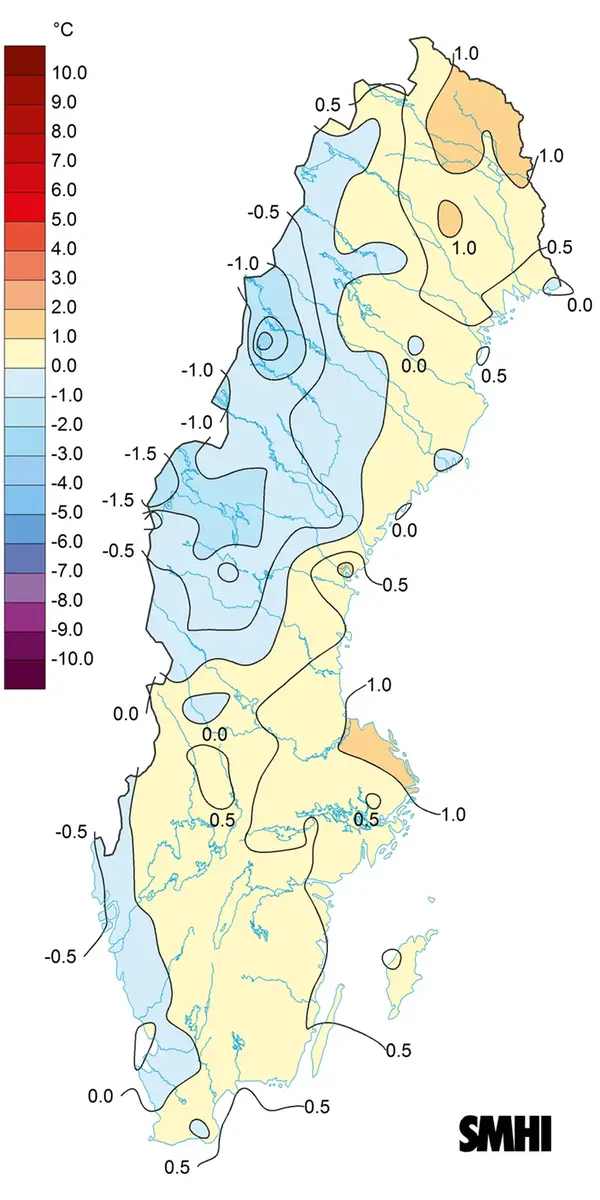 När ett medelvärde beräknas för hela Sverige, baserat på 35 mätstationer spridda runt om i landet, blir vintern 2020/2021 den minst milda vintern som noterats sedan 2017/2018.