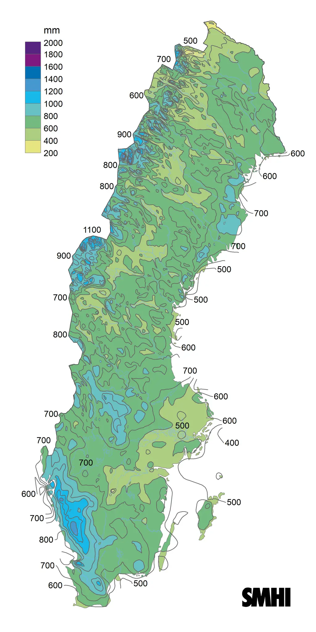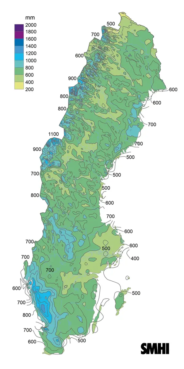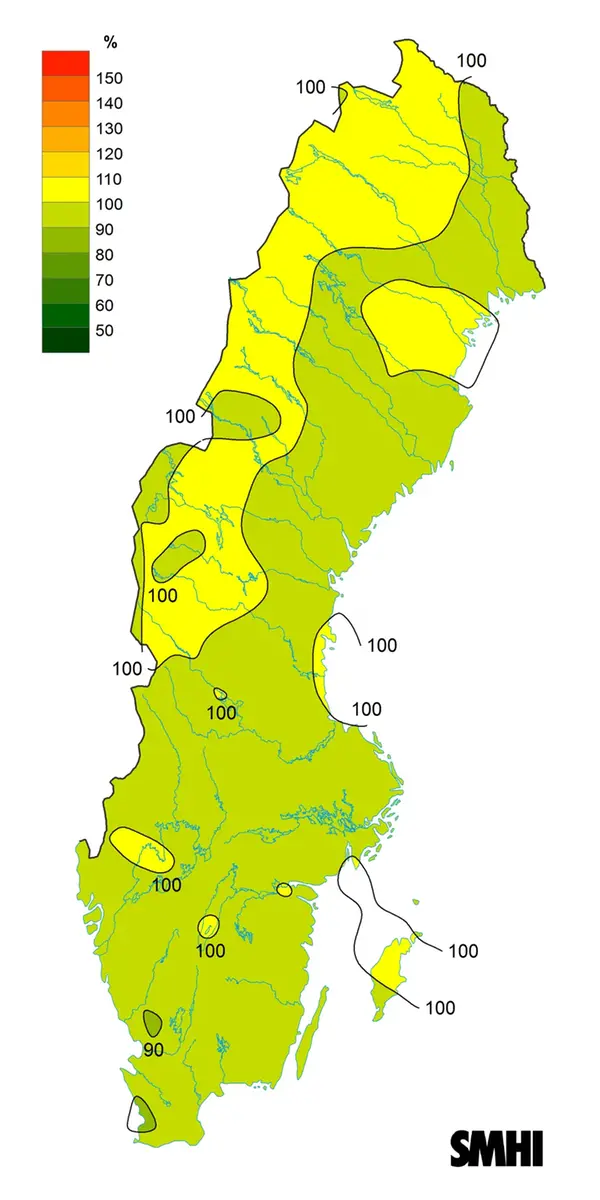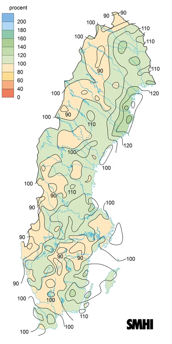 Däremot var det på många håll lite torrare än normalt i fjällkedjan och ner mot västkusten. Det gäller även i ett område från Vättern och upp mot Mälardalen.