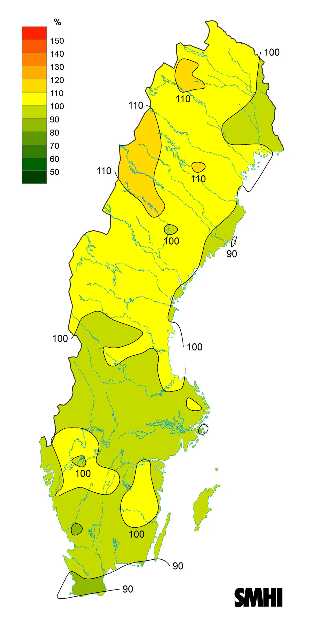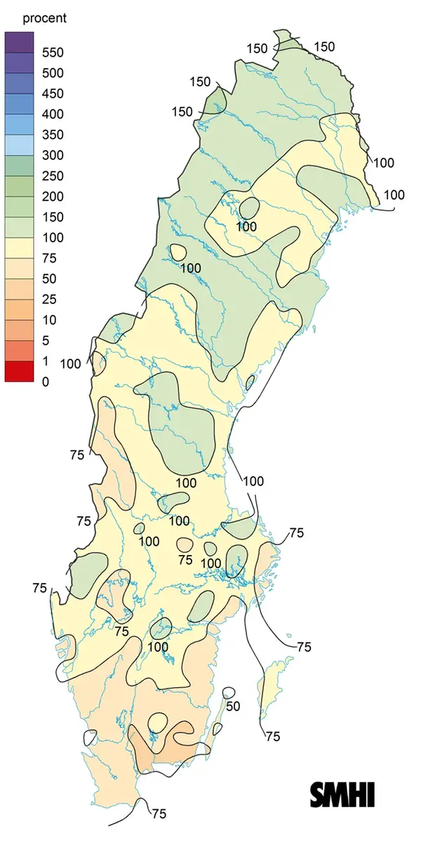 Nederbörd - Mycket torr i södra Götaland, lokalt mycket blöt i norr