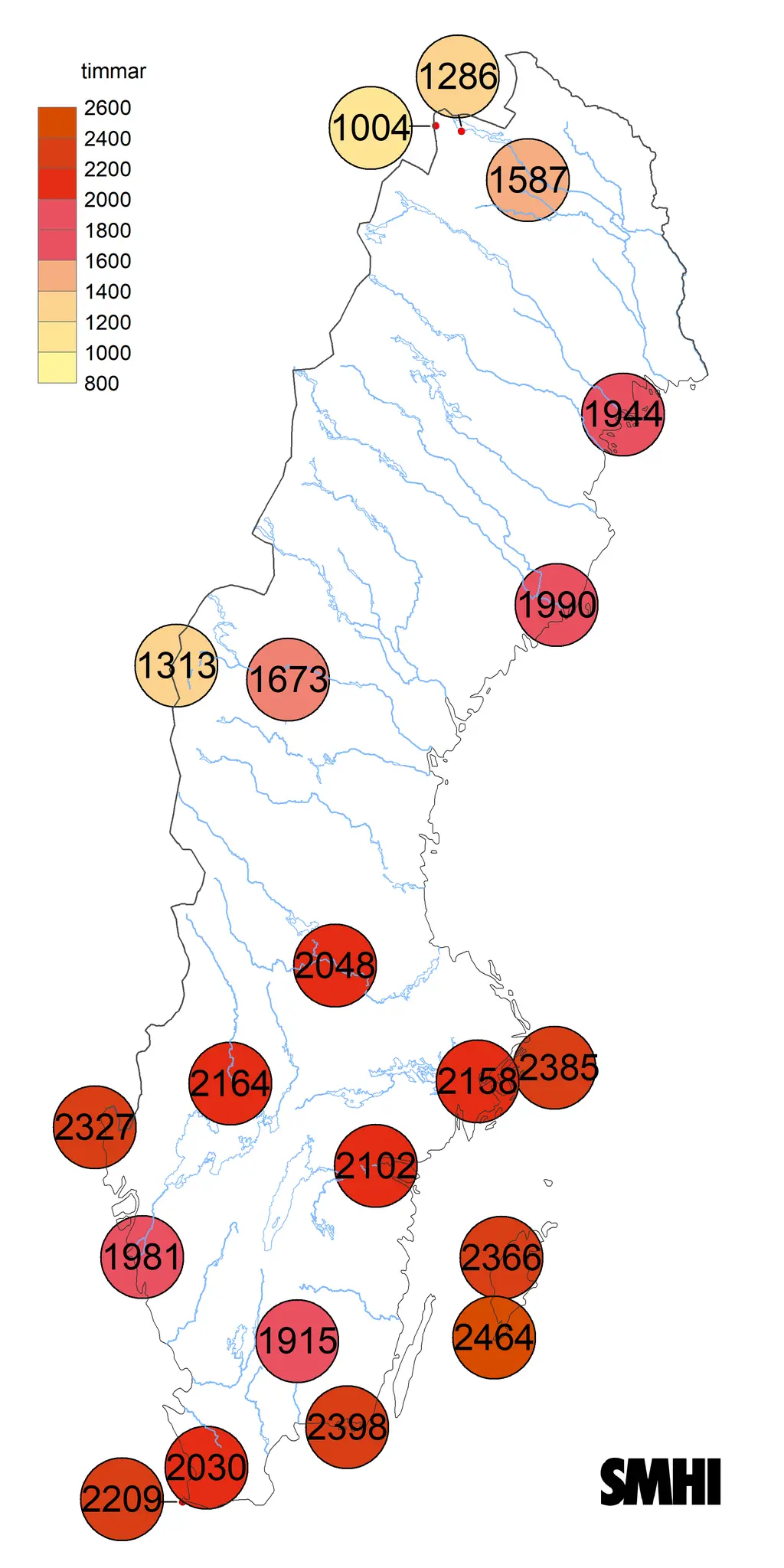 År 2022 var soligare än normalt vid de flesta av våra strålningsstationer. Allra mest sol fick Hoburg på södra Gotland med 2464 timmar. Det är rekord inte bara för den stationen utan för Sverige som helhet. Rekord sattes dessutom i Visby, Göteborg. Nordkoster, Växjö, Karlskrona och Falsterbo.