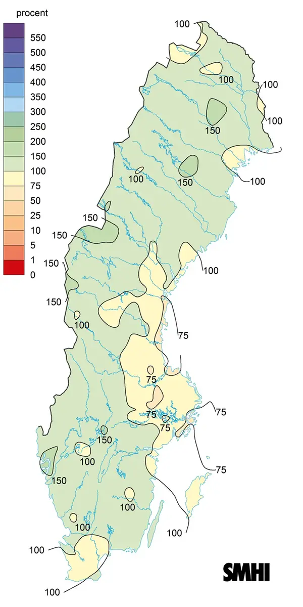 Det ostadiga vädret gjorde att det var ont om platser där det var torrt. Östra Svealand, sydöstra Norrland och norra Gotland hörde i alla fall till de områden som fick nederbördsunderskott, avser normalperioden 1991-2020.