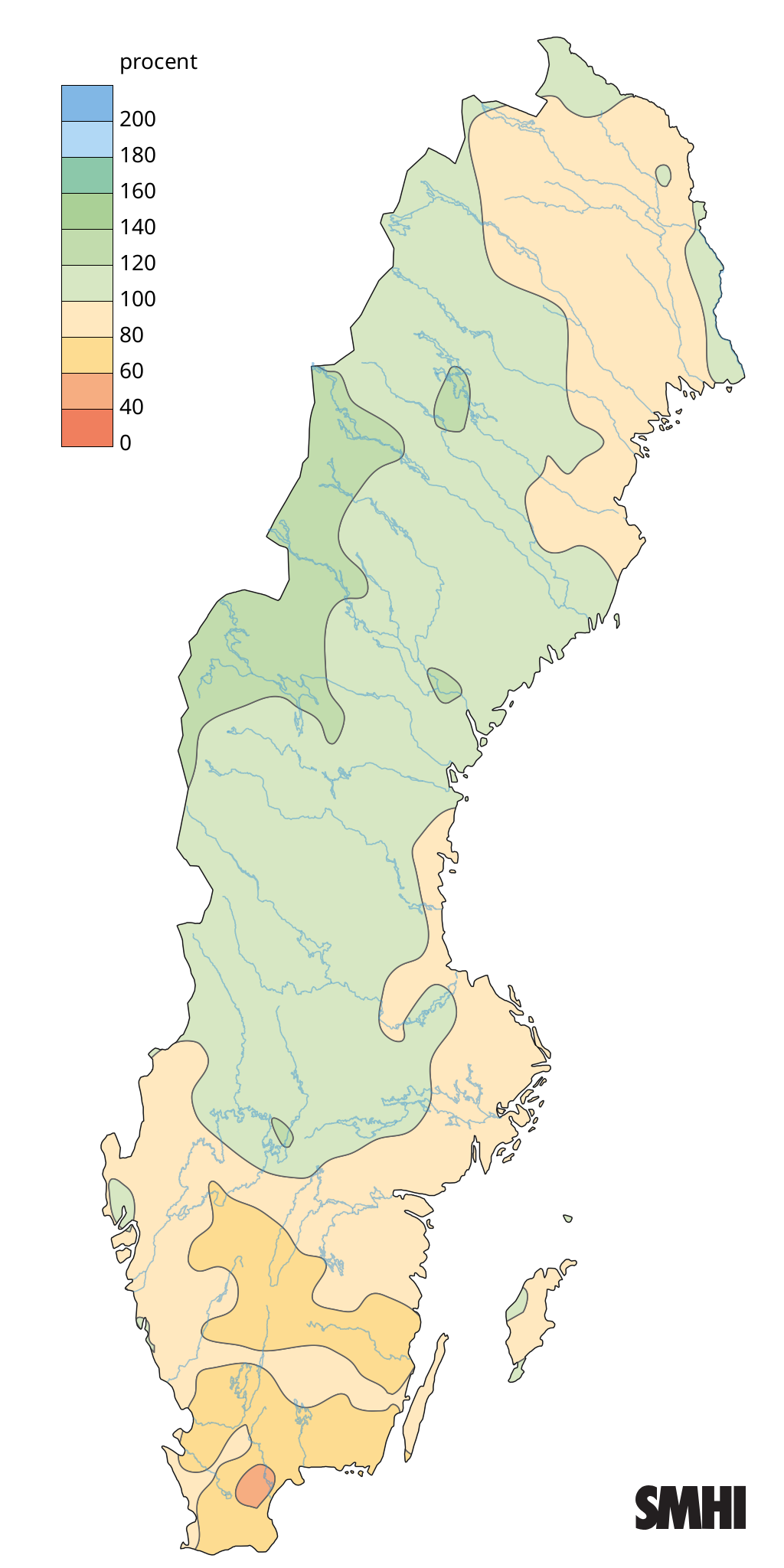 Större delen av Götaland fick ett år som var torrare än normalt, relativt 1991-2020. Lokalt var det fråga om ett mycket torrt år. Exempelvis har Målilla (startår 1946) i östra Småland haft sitt näst torraste år efter 2022. Torrare än normalt var det i mindre grad även över delar av nordöstra Norrland. Nästan hela västra Svealand och västra Norrland fick däremot mer nederbörd än normalt med de största överskotten i Jämtland.