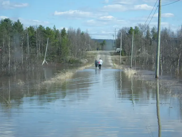 Översvämmad väg i Lannavaara, Lainioälven, maj 2013.