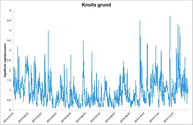Förstora bildenDen signifikanta våghöjden uppmätt av bojen vid Knolls grund 2014.