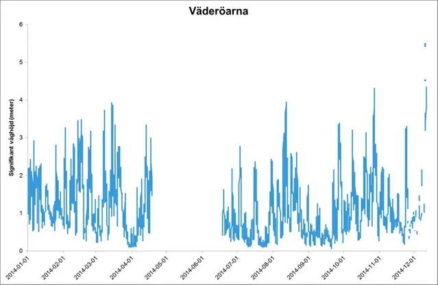 De högsta vågorna 2014 uppmätes i slutet av året och de allra högsta observerades vid Väderöarna på västkusten i december.