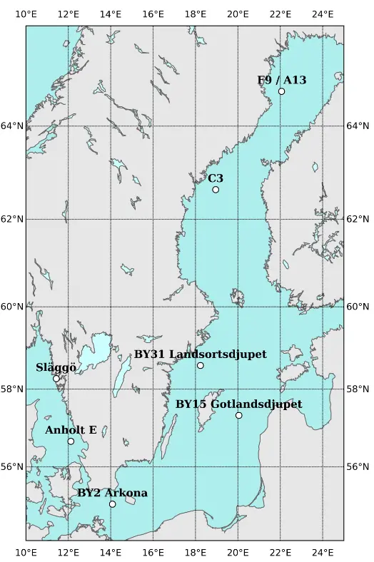 I Arkonabassängen i södra Östersjön pågick vårblomningen under samma period som i Västerhavet, alltså början av mars. I Bornholmsbassängen och vidare norrut och österut i Östersjön kom blomningen igång senare vilket är normalt för området.