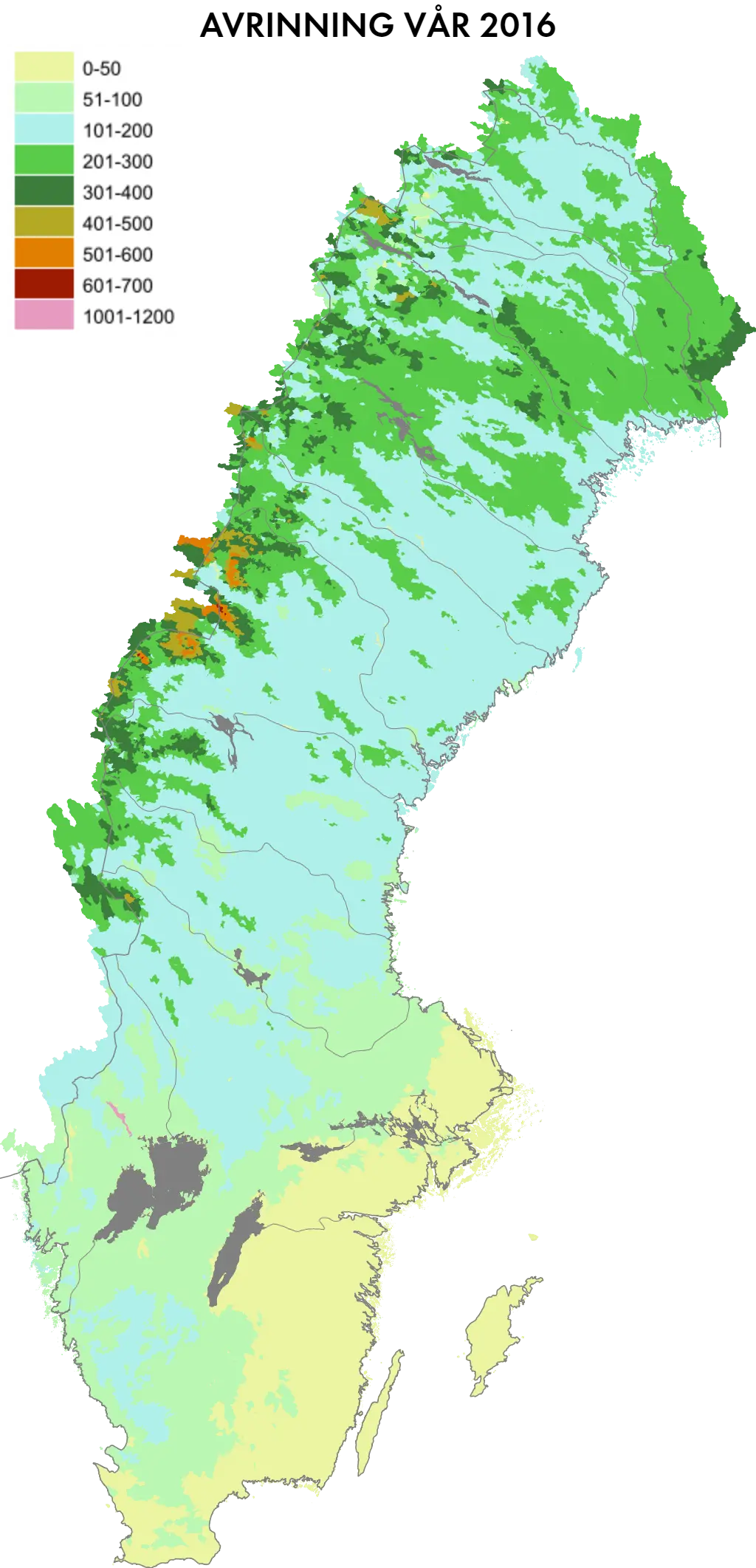 Våren var nederbördsfattig i Götaland och avrinningen var här lägre än normalt. I nordöstra Norrland och Svealand kom mycket nederbörd och avrinningen blev här relativt hög.
