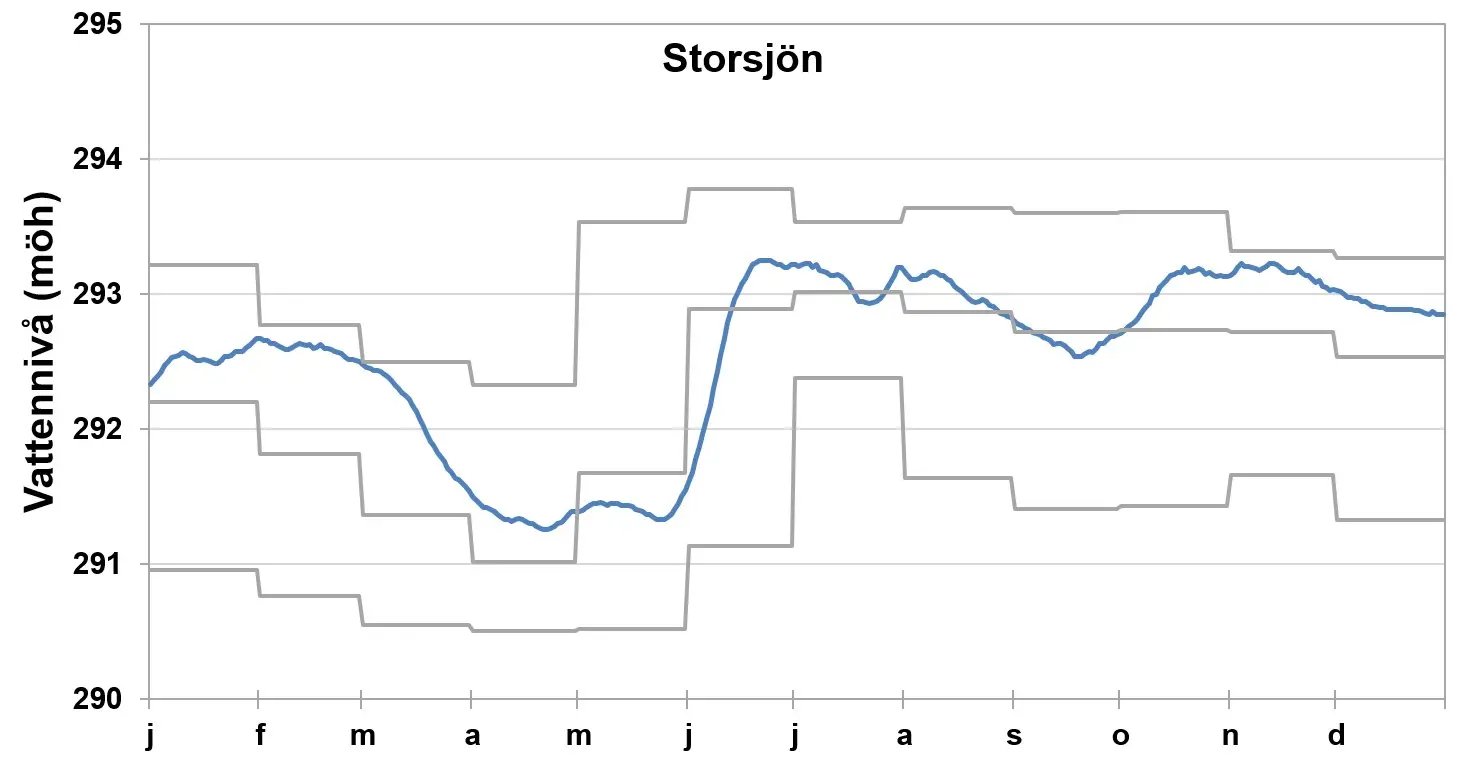 I maj steg steg vattenståndet till strax över det normala i mitten på juni. Under hösten steg vattenståndet i sjön och var i november nära tidigare högsta uppmätta värde för att sedan minska under december.