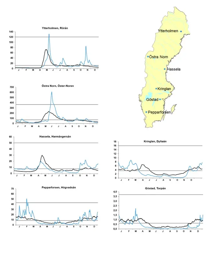 I slutet av året var det flödet normala eller över de normala i stora delar av Sverige.