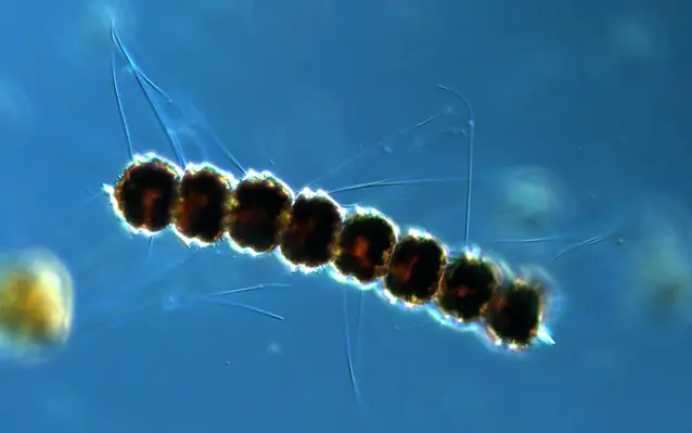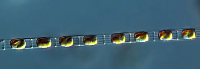 Kiselalgen Skeletonema marinoi brukar dominera under vårblomningen på Västkusten. Detta år var inget undantag. Arten bildar kedjor och varje kedja kan innehålla mer än 40 celler. Kedjorna varierar i längd, men ofta är de längre under vårblomningen.