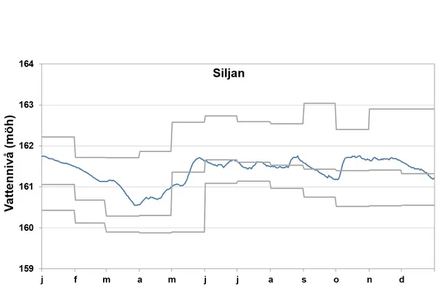 I början av året var vattennivån i Siljan över det normala. Fram till april var vattennivån sakta sjunkande men fortfarande över det normala. I april startade vårfloden med sakta stigande vattennivå. I början på juni var nivåerna normala för årstiden och låg på normala nivåer över sommaren och hösten. En våt och mild höst gjorde att vattennivån steg över det normala i oktober, i december började vattenståndet sjunka och var i årsskiftet normala.
