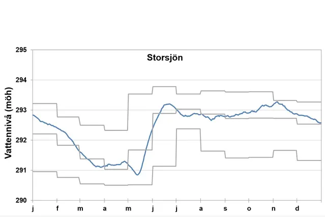 Vattennivån i Storsjön var högt under de första månaderna på året men sjunkande. I slutet av februari till maj var nivåerna på normala nivåer, i maj var vattennivån lägre än normalt fram till vårfloden start då vattennivån återigen kom upp till normala nivåer. Hösten var mild och nederbördsrik, i början av november var vattennivån endast 5 cm under det högsta uppmätta sedan 1940. Därefter sjönk vattenståndet under resten av året till normala nivåer i slutet av december.