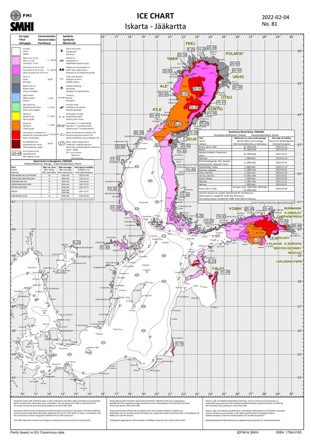 Animering som visar isens utbredning i Östersjön vintern 2021-2022.