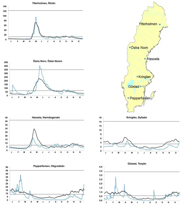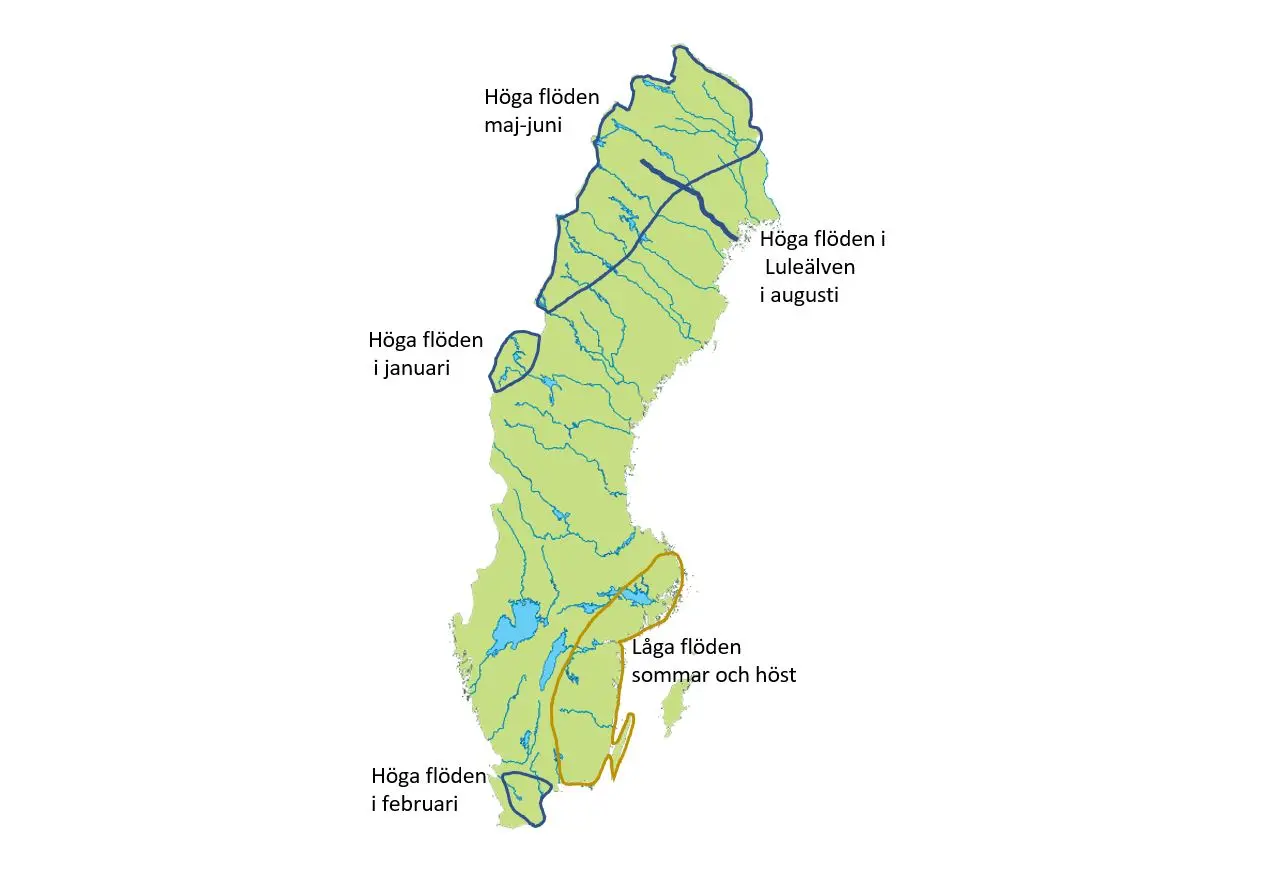 Under året förekom både höga och låga flöden i olika delar av landet. Årets vårflod blev hög i nordvästra Norrland och flödet i Luleälven var högt i augusti. Men det är nog de låga flödena i sydöstra Sverige under sommar och höst som påverkade både samhället och naturmiljön mest.