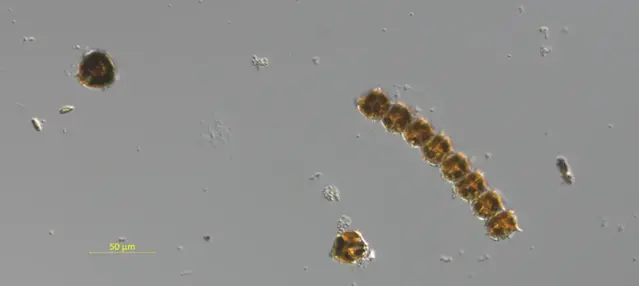 Dinoflagellaten Peridiniella catenata var vanlig i vårblomningsproverna vid provtagningen i april. Denna art är en av få dinoflagellater som bildar kedjor. Arten är vanligt förekommande i vårblomningen i Östersjön.