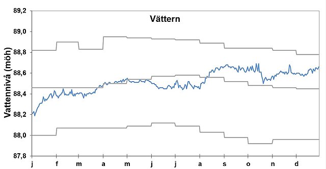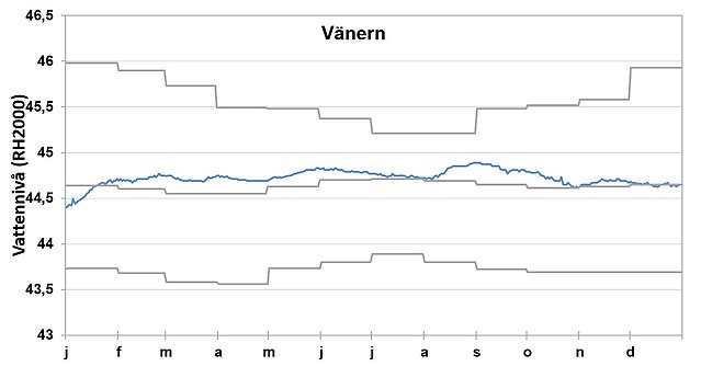 I januari steg vattennivån snabbt i Vänern på grund av stora nederbördsmängder och snösmältning. Därefter låg Vänerns nivå strax över den normala fram till slutet av året då nivån var normal.