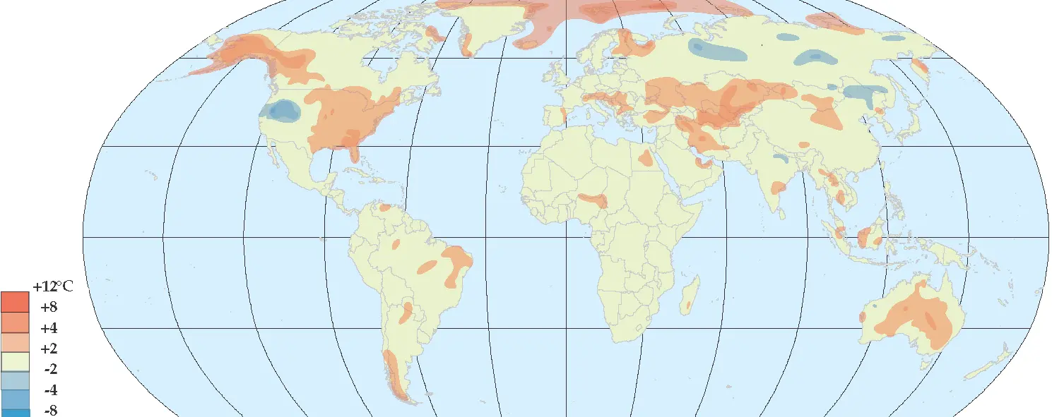 I sydvästra Kanada och östra USA var det 2-5 grader varmare än normalt och i Alaska upp till 7 grader varmare. För södra Floridas del var det en av de tio varmaste januarimånaderna som någonsin uppmätts och i Miami var det den fjärde varmaste.