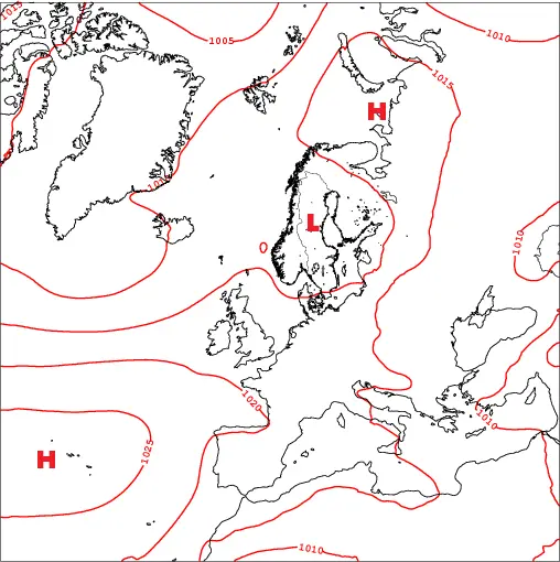 Förstora bildenMedellufttryck över Europa i juni 2013.