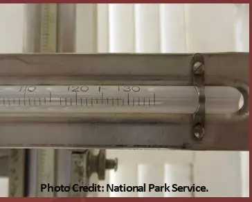 Observationerna i Deth Valley utförs av personal vid nationalparken. Dessa tog påpassligt en bild av termometern i samband med rekordtillfället den 30 juni. I USA rapporteras temperaturen i grader Fahrenheit, i det här fallet 129°F (53,9°C).