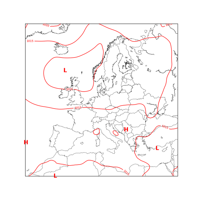 Förstora bildenMedellufttryck i Europa i april 2024.