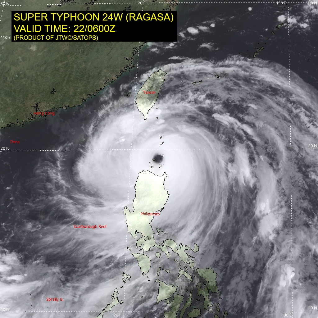 Månadens kraftfullaste tropiska cyklon, Ragasa, bildades den 19 september öster om Filippinerna. Stormen rörde sig på en nordnordvästlig bana under stadig intensifiering och kom efterhand att utvecklas till en kategori 5-orkan. Den 22:a september passerade Ragasas öga den lilla filippinska ön Calayan med omkring 9500 invånare. Orkanen fortsatte sedan vidare bort mot Kina till den 24:e och blev den tredje i rad på kort tid att nå land över Guangdong-provinsen i Kina. I anslutning till Ragasa föll stora mängder regn över Taiwan vilka gav upphov till översvämningar. Den 23:e föll 664,5 mm regn i Tianxiang i Hualien County i östra Taiwan. Ett par andra stationer på öns ostsida fick denna dag mer än 500 mm regn. Ragasa krävde närmare 30 dödsoffer på Filippinerna och Taiwan.