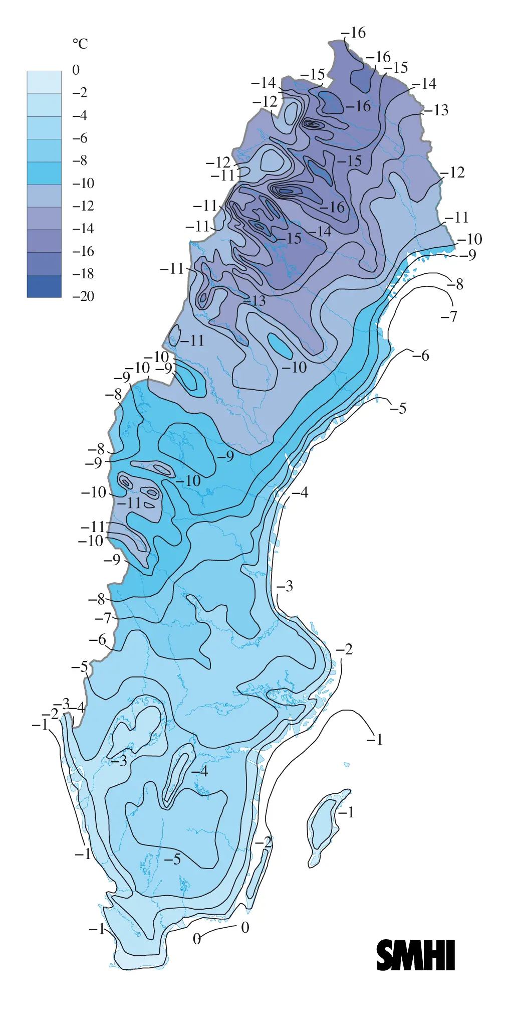 Bergslagen har nu, märkligt nog, haft temperaturöverskott alla januarimånader från och med 1988. Större delen av landet fick mindre nederbördsmängder än normalt, allra minst föll i fjälltrakterna vid Stora Sjöfallets nationalpark.