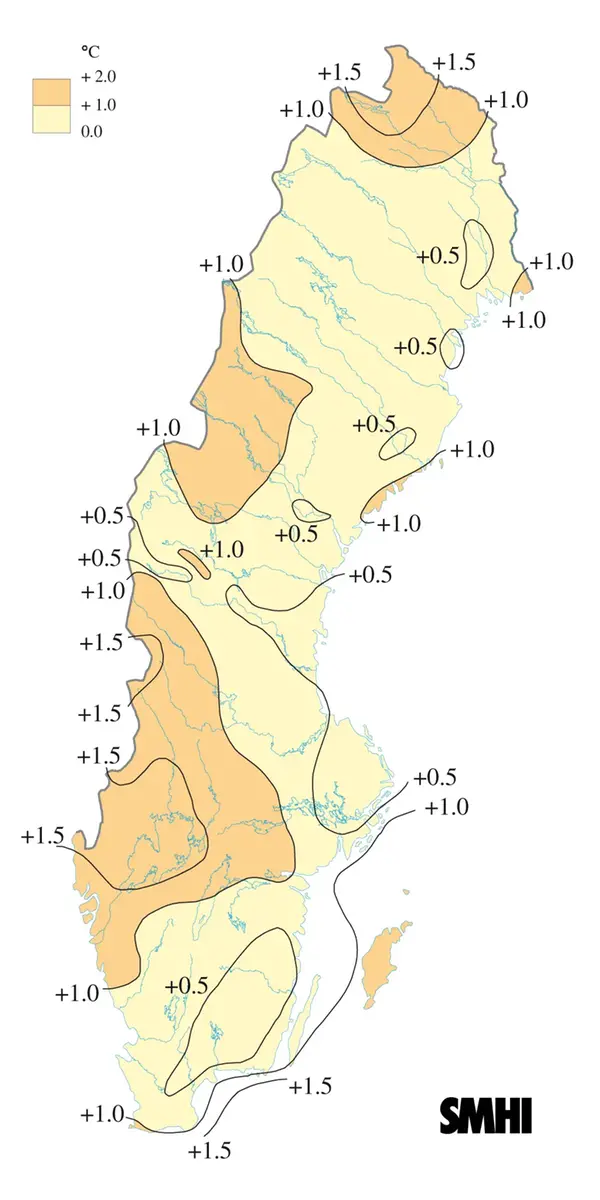 Mesta värmen fick de västra delarna av Sverige, där flera platser bara haft omkring femton varmare majmånader sedan 1901. Växjö ligger däremot sämre till då mer än varannan majmånad där varit varmare än i år.